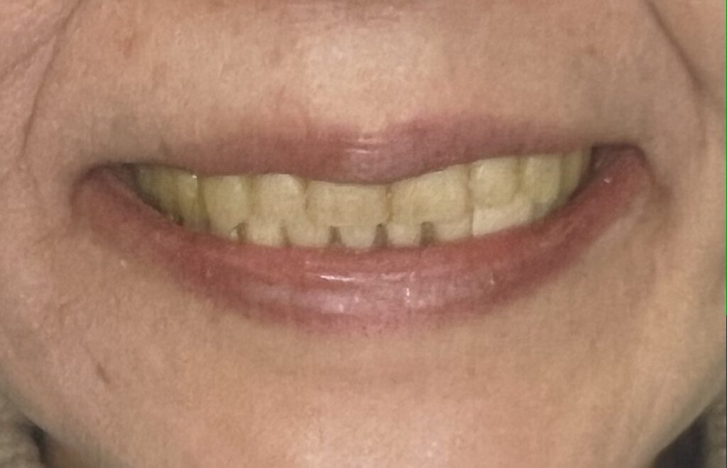 完成した入れ歯は、これまでの茶色い歯ではなくホワイトニングをしたような、上品で明るい白い歯を選ばれました。