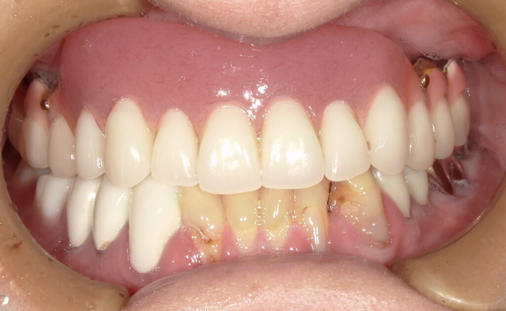下顎には数本残せる歯があり、レジリエンツテレスコープを用いた治療を行うことになりました。